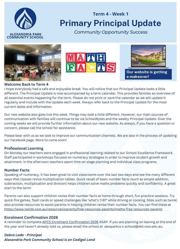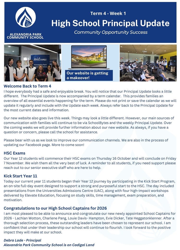 Principal Updates are published every week. They ensure that our school community stays up to date on what is happening each week.
